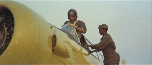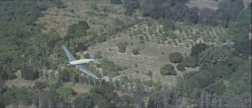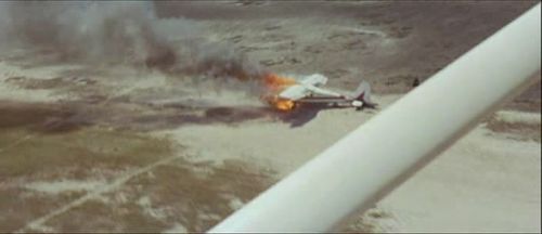 The chase plane (now a high-wing aircraft) tried to land and bring back the three men but must go under fire.