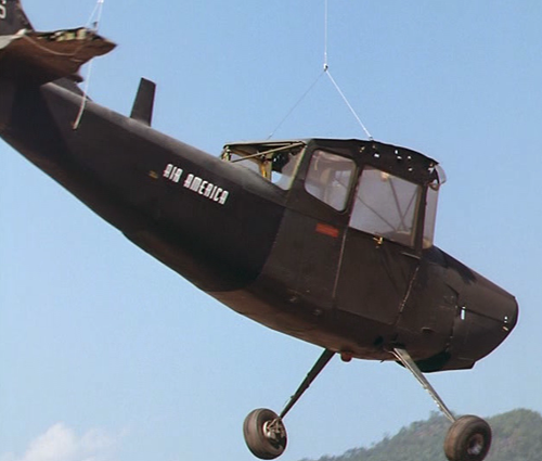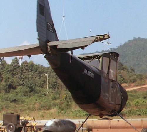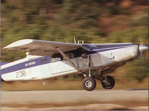The aircraft was rebuilt from a junkyard of the Thai Air Force where the former american Fairchild AU-23 (military variant of the PC-6C) have been found. Aircraft have been sold to the Royal Thai Air Force when the withdrawal of the USA from the South East Asia, then rebuilt 15 years later by civil aircraft advisors for the movie. Air America livery.