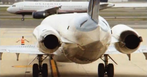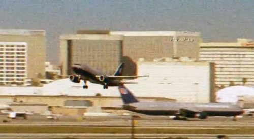 Operated by US Airways, with an unidentified T-tail, narrow body aircraft in the foreground.