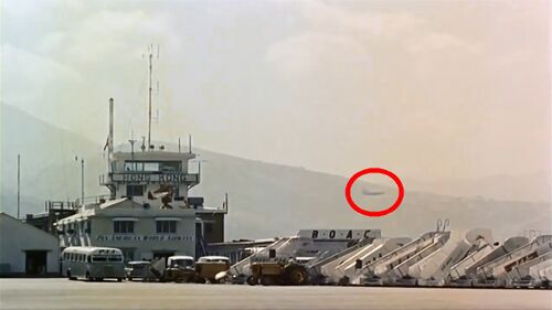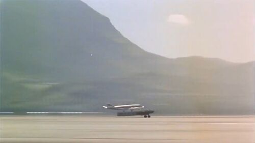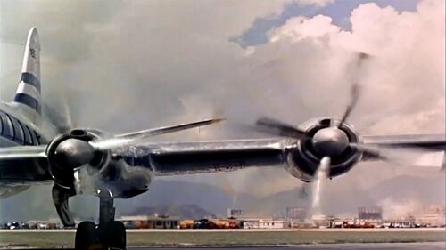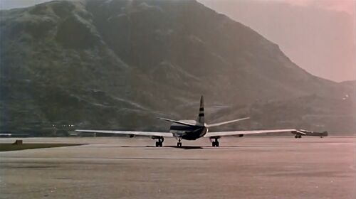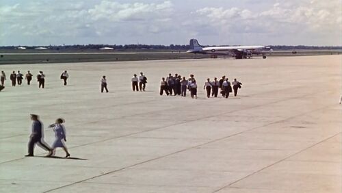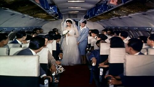Same airport... two Royal Thai Air Force Republic F-84G Thunderjets passe in the background. Strangely, they make little noise and the dialogue remains understandable without the stewardesses speak louder !