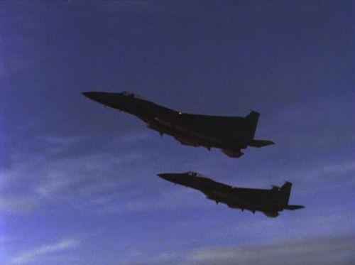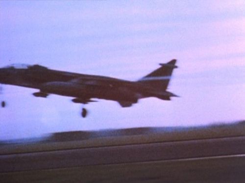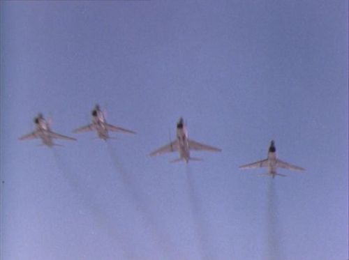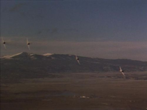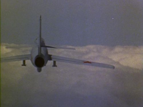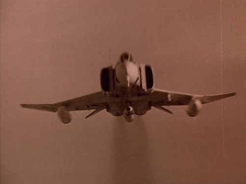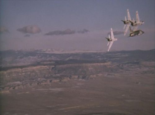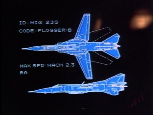 Also seen in this episode. The stock footage used is mostly the same between the two episodes. Note the error in the screen describing the aircraft as a MiG 23S 'Flogger-B'... the 23S was referred to as 'Flogger-A'.