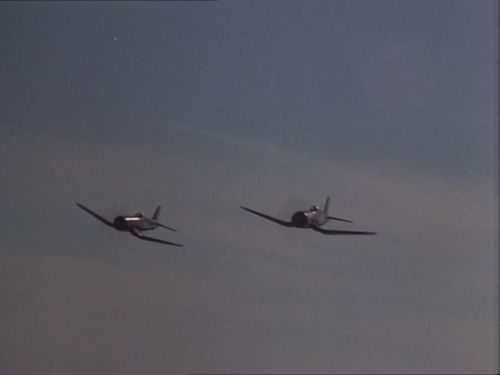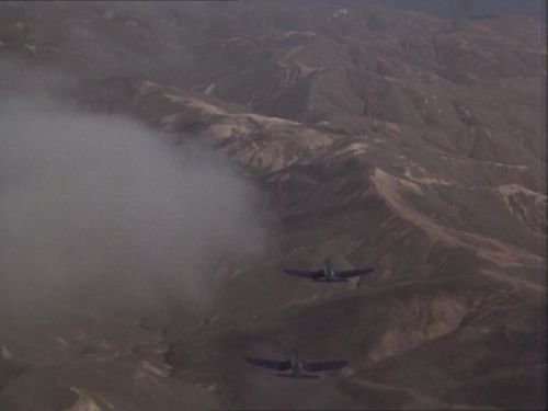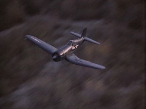 These rather old aircraft are used by the North Limbawe Air Force. They engage in a dogfight with the Hughes 369s seen in this episode. A similar aircraft (probably the same) attacks the twin-prop featured in Ep.2.05 The Hunted. Both appear to be F4U-4s