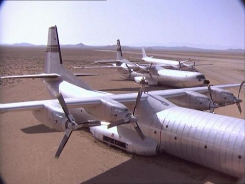 A group of mercenaries kidnap Hawke and take Airwolf. The Hercules is used to transport them to Libya.