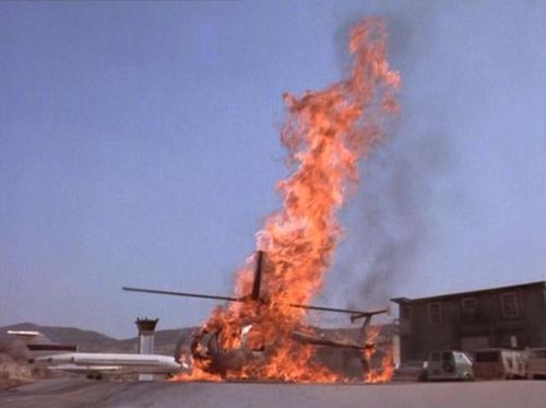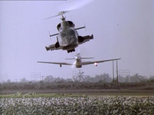 Another 369D is used (not by the bad guys for once!) by a stunt pilot filming a movie who proceeds to crash.