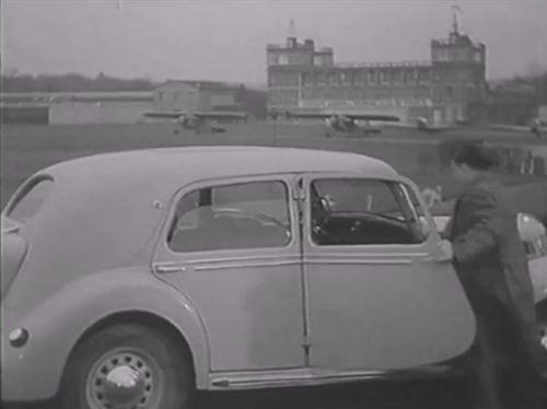 Two high-wing aircrafts and two others with low-wing in front of Aéroparc de Buc (airfield south-west of Paris, France which was closed in 1966).