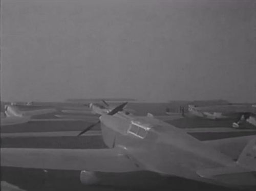 Too many extras acting as japanese people don't help the recognition of this low-wing aircraft (two- or three-blade propeller ? Two or more windows behind the cockpit).