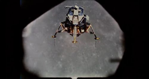 Archive footage of the Grumman Lunar Module (LM-5 Eagle) leaving the CSM and decending to the Moon's surface.