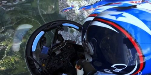 From the cockpit (but not showing the special 'by hands' system in place of the usual rudder pedals).
