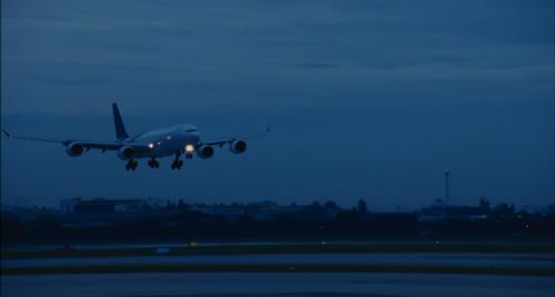 Airbus A340-500 in which Joe arrives in Bangkok from Prague. The aircraft is in colors of Thai Airways International, but without reporting marks.