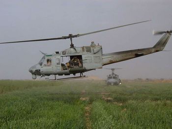 The Bell UH-1N Twin Huey is a twin-engined, twin blade, medium/heavy-lift utility helicopter in extensive use with U.S. and Canadian armed forces, as well as many militaries around the world. It is an improved version of the Bell UH-1 Iroquois, and carries out transport and search and rescue roles. A civilian version, the Bell 212/412, was developed in parallel with the UH-1N. The helicopter is also in production as the UH-1Y Venom, a four bladed variant similar to the Bell 412, used by the USMC.