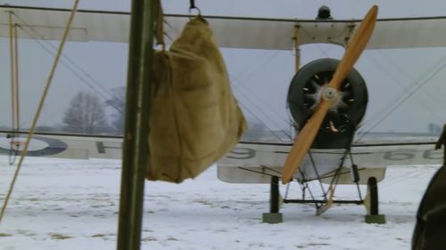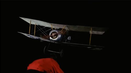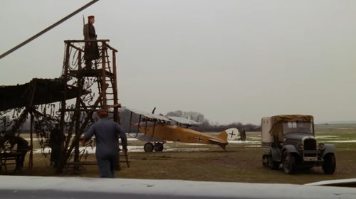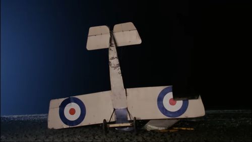 But he first crashes this full-size static model of Shuttleworth's Sopwith Pup (N5180, as actually painted; former G-EBKY), built especially for the film by Skysport Engineering in just five weeks.