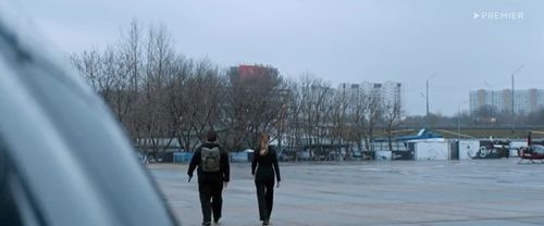 (far right) Note that the Robinson R44 seen taking off seconds before is still on the ground (continuity error).