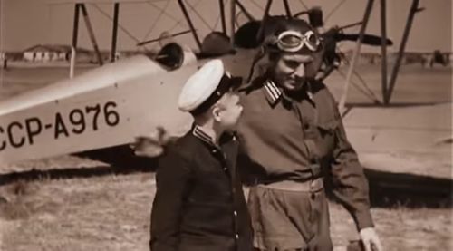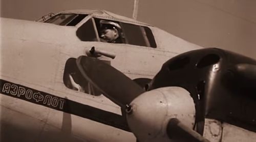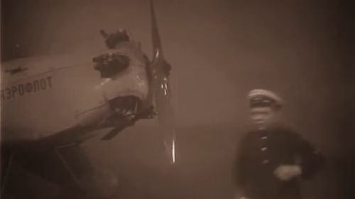 Airport of Kiev-Brovary which was the place where Istrebiteli was filmed the previous year. German army offensive totally destroyed it in 1941 and after the war, a new place was held for the next airport.