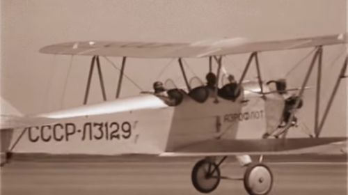 Just before the touch down of the Laville PS-89 in front of some Polikarpov U-2s and other passenger aircraft.