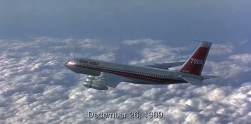 Seen in TWA's livery although they never operated the type. It is also an anachronism, as the scene was set in 1969, while the maiden flight of A310 occurred only in 1982.