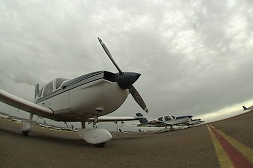 Parafield Airport's tower with a Cessna 210.