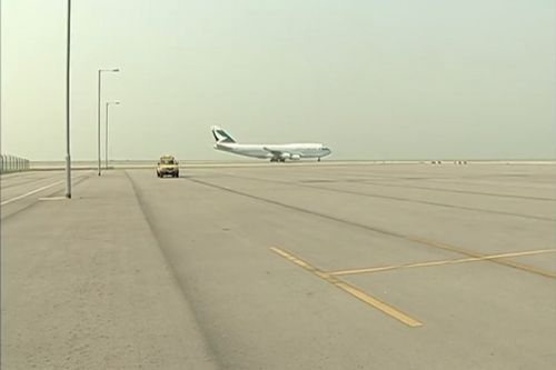 With the control tower of Hong Kong International Airport (HKG/VHHH) in the background.