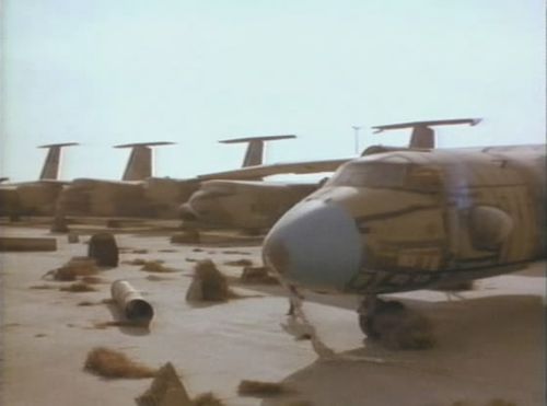 On the very last shot just before the ending scene on the shore, we just have a glimpse on the tail of a Lockheed C-130 Hercules in the far background.