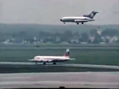 Boeing 727-30 of Lufthansa and Ilyushin Il-18V of Balkan Bulgarian Airlines.