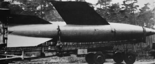 Winged A4b variant of the V-2 rocket on a trailer.