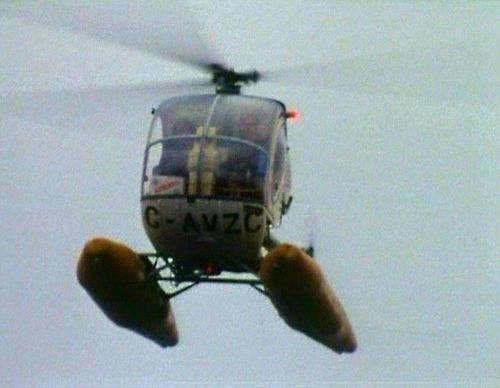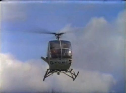 The Doctor steals a Land Rover and is chased by soldiers working for General Finch, and this helicopter. However after taking over another Land Rover used by his pursuers, he impersonates a soldier and radios the copter, and is able to call off the pursuit. It was entirely stock footage since the production couldn't afford to hire a helicopter.
