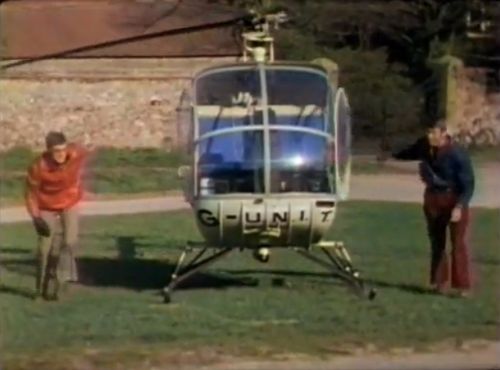 The Brigadier is picked up in this helicopter and it gets shot down by Morgaine in Part 2. Registration G-HELO, Serial 124.