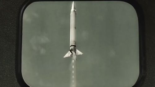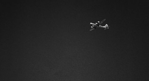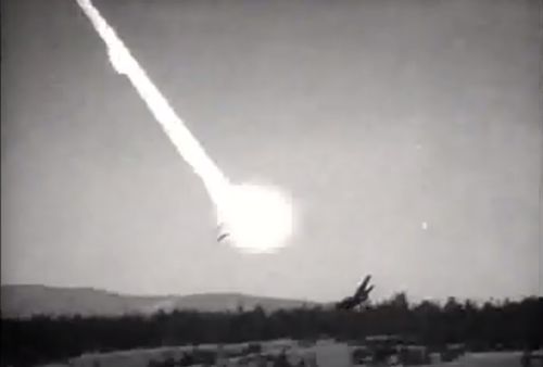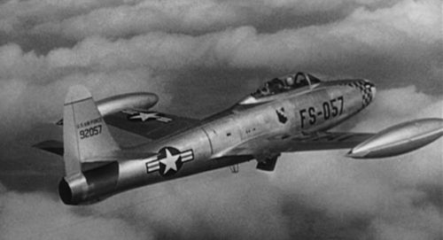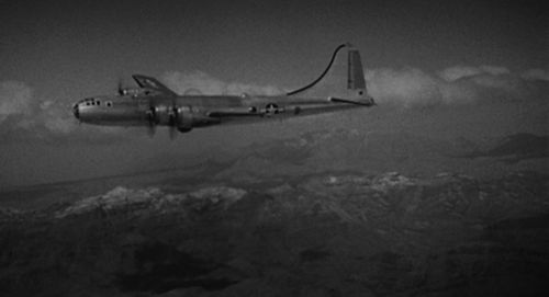 The Flying Saucer's ray hitting the aircraft : reuse of public footage about the Nike/Ajax validation test from 1954. The B-29 is now a target drone QB-17.