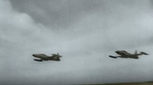 Mid-air collision which occurred near Spokane, Washington, on the afternoon of July 23rd, 1944. Archive footage modified to include the flying saucer's death ray.