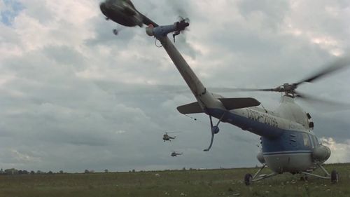 Probably a machine sized at the end of the Vietnam War. Only seen on the ground (a mock is used for the flight).