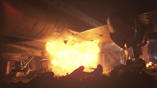 Action is set at the fictional mountainous airport of Bidri. An earthquake is destroying the runway and a dam and an oil refinery.