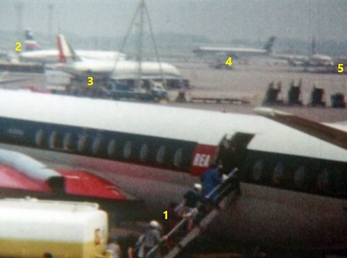 BEA's Vanguard in the background and Boeing 707 of Lufthansa behind it.