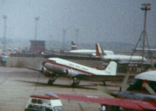 and one more; a delightful scene with a Jersey Airlines Herald and a Derby Airways DC3 that’s probably in the Channel Islands, but we can’t be sure!