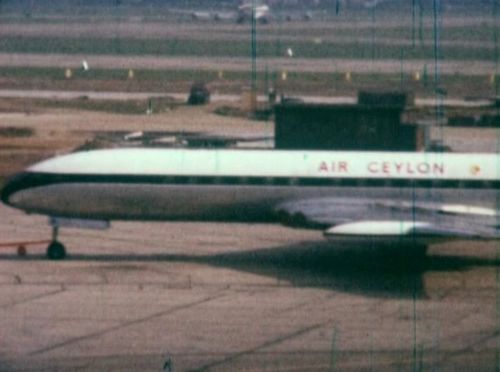 Leased from B.O.A.C in Blue Tail Twin Stripe livery , with Air Ceylon red markings.