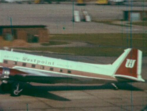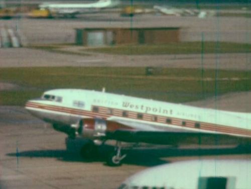 Douglas C-47 Skytrain of British Westpoint Airlines with BEA's Vanguard in the background and foreground right.