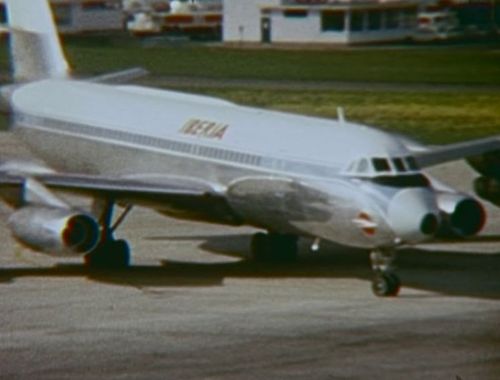 Alitalia's Douglas DC-8 in the background.