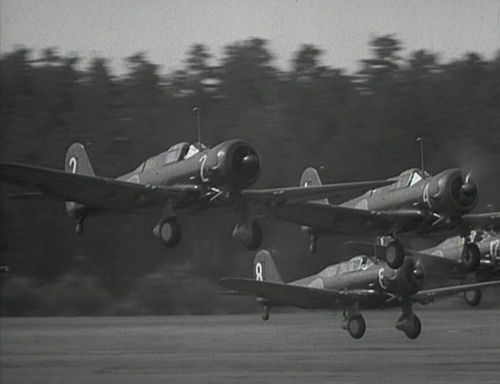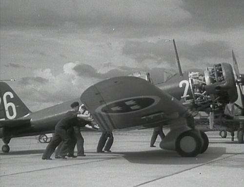 The planes used are Northrop 8A-1 licence built in Sweden by SAAB and ASJA with NOHAB MyXXIV engines (Mercury licence). The planes are known as "B 5" by the Swedish Air Force and were used as dive bombers.