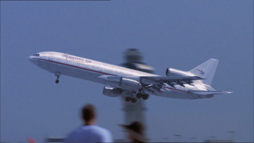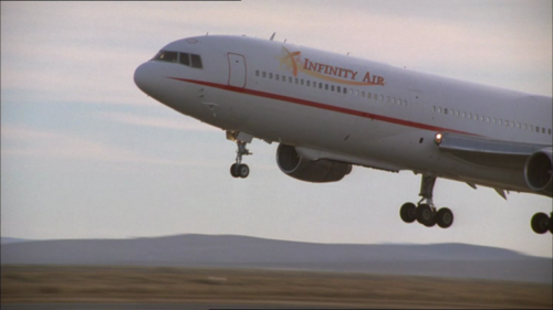 Fictional Infinity Air livery photoshoped on a real airliner taking off from Los Angeles International Airport (LAX) despite action place is at Newark Liberty International Airport (EWR/KEWR) according the road sign.