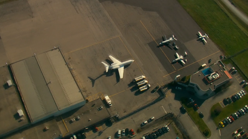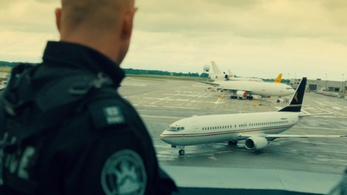 Marked with the false registration C-XBRY and false airline VolanoAir for the show. Actually C-FLEJ, c/n 24751 built in 1991. Ground scenes were filmed at John C. Munro Hamilton International Airport (YHM/CYHM) in Mount Hope, Hamilton, Ontario.