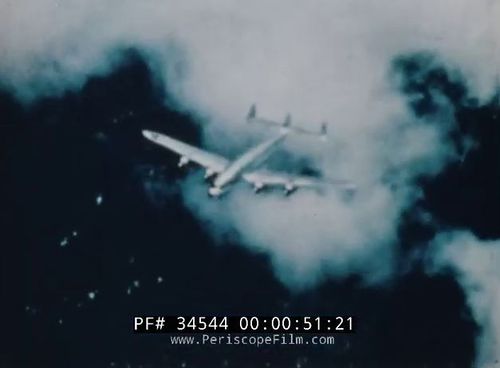 Reference to the Pan Am's first round-the-world scheduled flight in June 1947. The aircraft presented is actually a military variant Lockheed C-69 Constellation of the USAF.