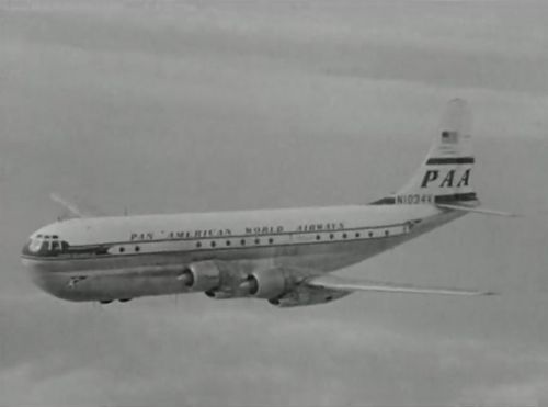 Reg. N1034V Boeing 377-10-26 Stratocruiser Clipper Westward Ho of PAA-Pan American World Airways used for the in flight scene.