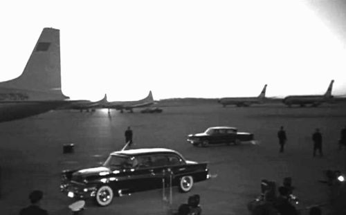 (center) Two Convair C-131s and (left) two Boeing C-135s of the USAF in the background.
