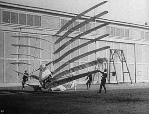 Archive footage also seen in Sonda and Those Magnificent Men in Their Flying Machines or How I Flew from London to Paris in 25 hours 11 minutes - IMPDb: Frequently Seen Aircraft (Human Powered Flight / Ornithopter)..