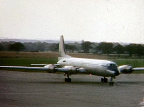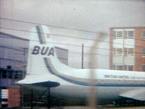 In the background, a Vickers 833 Viscount of British United Airways, and an unidentified De Havilland DH114 Heron.