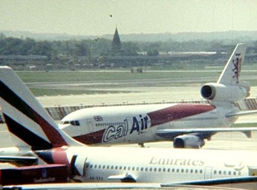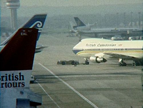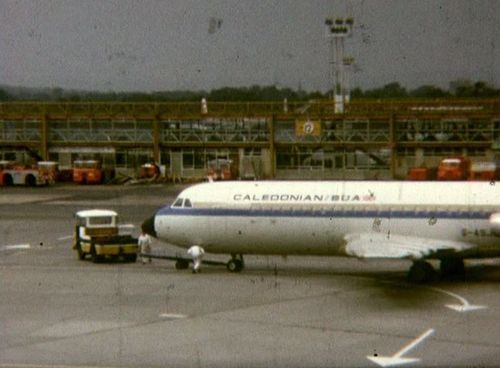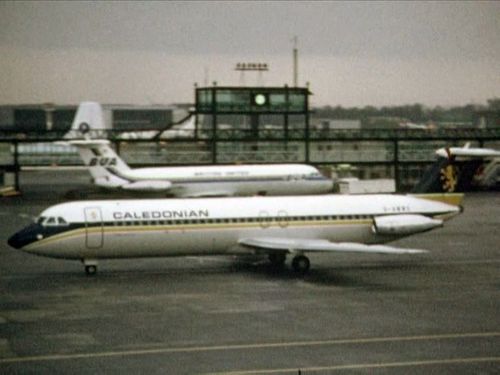 In the background, a BAC-111-509EW One-Eleven of Caledonian Airways.