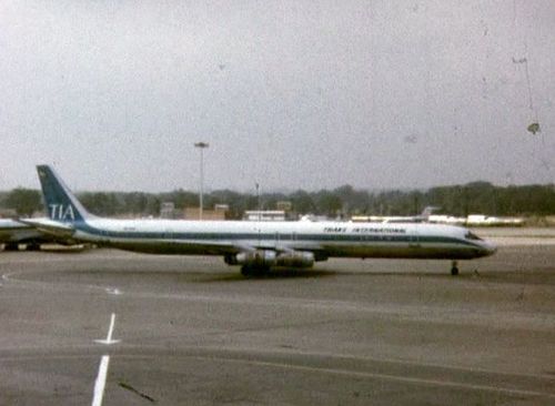 To the left background, an Intercontinental Lockheed L-1049H Super Constellation .