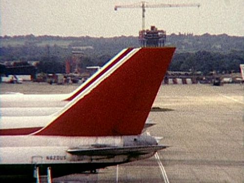 Gradually, the wide-bodied era starts, with early 747s, including a ‘Big Orange’ from Braniff, appearing alongside DC10s and Tristars, featuring airlines like CP Air, Wardair, Air Florida, BCAL, Cal Air, World Airlines, TWA and British Airtours.