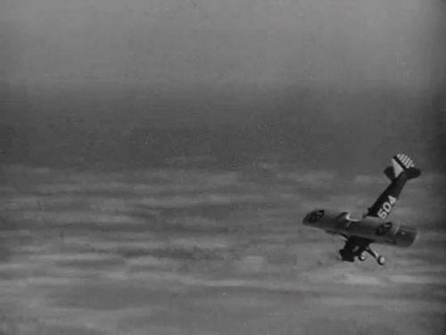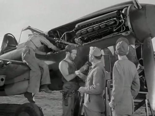 The crash action is performed with an unidentified aircraft : the canopy seems of bubble style and the chin scoop of the radiator not so deep the common one. Is it one of the three XP-40Q ?