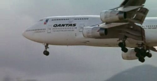 One 747-467 of Cathay Pacific very nearly crashes into Godzilla when he menaces Kai Tak.