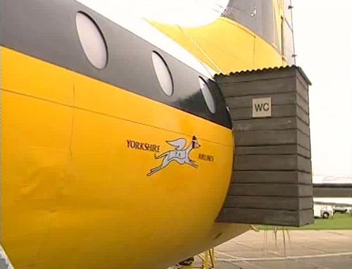 Monarch Airlines Bristol Britannia in its early 70’s livery, with fake made for movie ”Yorkshire Airlines” logo, and very “specific” Water Closet external device!