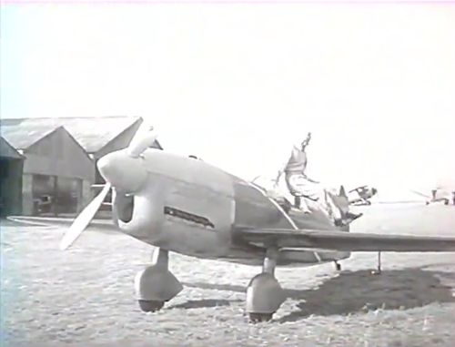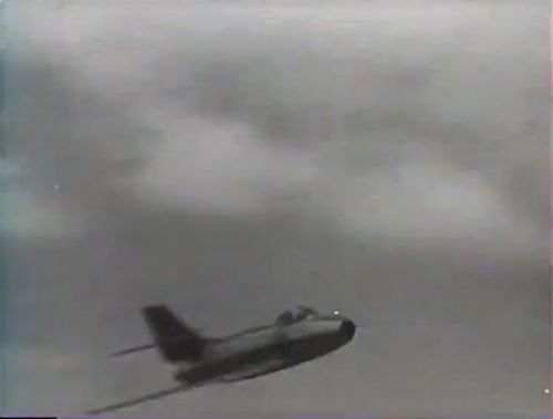 - less likely but not impossible, it could be (SNCASE-built) de Havilland DH100 Vampire Mk 5 c/n 10109 of EC 3/2 (between April and August 1952 (!) and later on July and August 1953 ... but then too late for the movie as the release date was on April 1953).